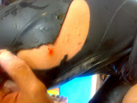 At 60m I banged into the inner wall of Blue Hole, ripped my suit and scratched my skin.